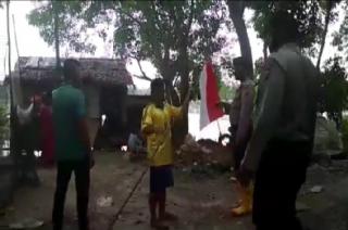 Polsek Tenayan Raya Bagikan Bendera Merah Putih dan Sembako