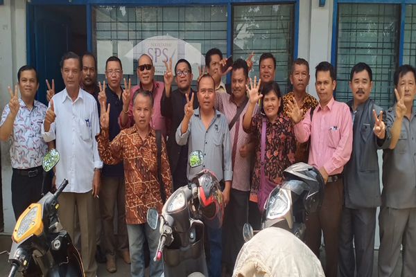 Usai rapat pembubaran Panitia Natal Oikomene Wartawan dan Insan Pers Provinsi Riau Tahun 2019 dilakukan, sejumlah pengurus dan panitia foto bersama, Senin (9/3/2020) di Sekretariat SPS Jalan Sumatera Pekanbaru,
