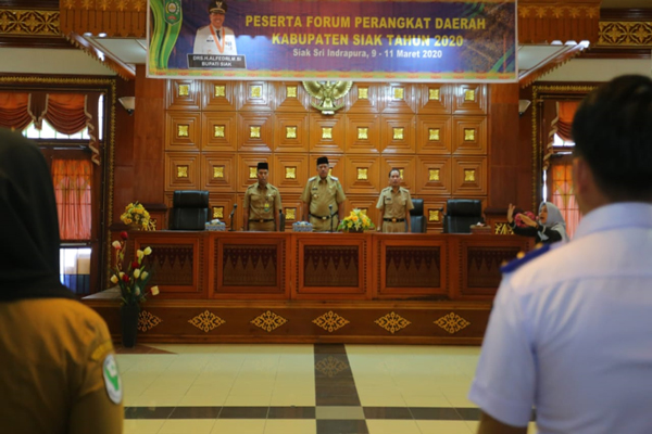 Bupati Siak Drs H Alfedri, menyerahkan sebanyak 214 Surat Keputusan (SK) Pengangkatan Pegawai Negeri Sipil Formasi Umum Tahun 2018 dan Formasi STTD Kementerian Perhubungan di Lingkungan Kabupaten Siak bertempat di Ruang Siak Sri Indraa Pahlawan, Kantor Bupati Siak, Senin, (9/3/2020).