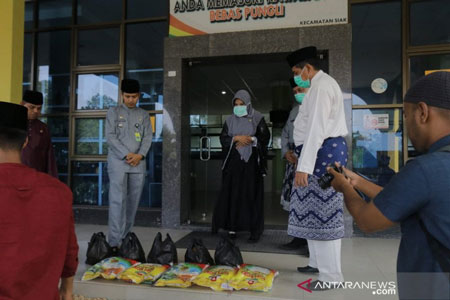 Bupati Siak, Alfedri ketika menyalurkan bantuan sembako untuk ODP Covid-19.