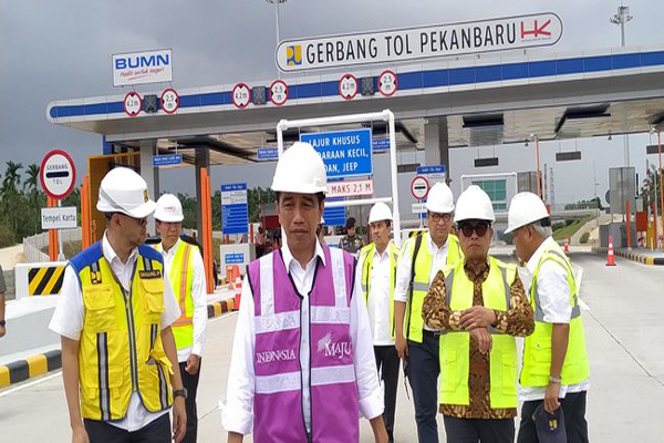 Cek Progres : Presiden Joko Widodo (Jokowi) melakukan peninjauan di ruas Tol Pekanbaru-Dumai seksi 1. Secara keseluruhan diharapkan pembangunan tol Pekanbaru-Dumai selesai akhir April 2020.