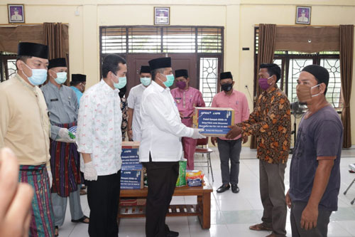"Saat mendengarkan suara azan, batin saya menangis, rindu ingin sholat berjamaah di Masjid. Namun disaat seperti ini tidak mungkin saya lakukan demi menghindari penyebaran wabah Covid 19," ujar Bupati Alfedri sesegukan saat menyerahkan Bantuan sembako kepada warga kecamatan Koto Gasib bantuan PT RAPP, di Aula kantor Camat, Jumat (22/05/20).