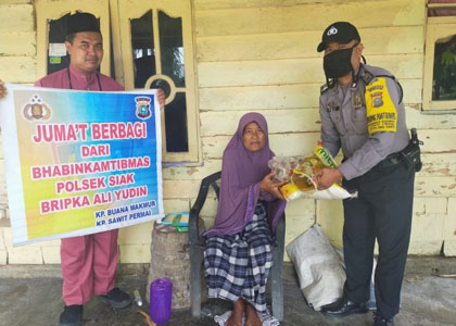 "Kita hari ini sekitar pukul 10.30 WIB melaksanakan kegiatan rutin kita, yaitu kegiatan Jumat berbagi dengan sesama di RT 04 RK 02 Kampung Sawit Permai, Kecamatan Dayun, Siak, ini dan menyampaikan pesan-pesan kamtibmas kepada masyarakat. Alhamdulillah kegiatan kita selama ini berjalan dengan lancar," kata Babinkamtibmas Kampung Sawit Permai dan Kampung Buana Makmur Bripka Ali Yudin, kepada media Jumat (12/06/20).