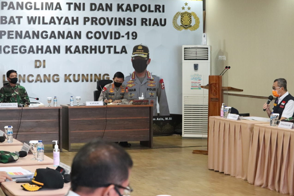 Bahas Covid-19 & Karhutla, Panglima TNI dan Kapolri Rapat Bersama Pejabat Riau