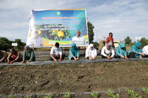 "Pemerintah Daerah mengapresiasi upaya meningkatkan ketahanan pangan ini, karena sejalan dengan usaha pemerintah pusat melalui program strategis agar Indonesia ini berkedaulatan pangan. Disamping itu kita juga perlu kiranya membuat cadangan pangan di masa pandemi Covid 19 ini, pemerintah daerah akan mendorong agar disetiap kampung dan pelosok bisa menanam dan memenuhi sendiri kebutuhan pangan melalui Dinas Pertanian," sebutnya.