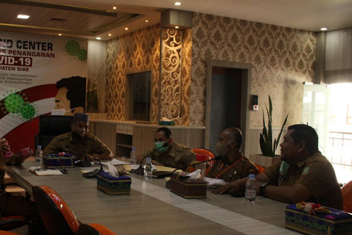 Asisten III Setda Kabupaten Siak Jamaluddin bersama Korwil V KPK Andi Purwana dan Stakeholder terkait melaksanakan Sosialisasi Virtual Kebijakan Benturan Kepentingan atau Conflict Of Interest (COI) dan Implementasi di Ruang Bandar, Lt.II Kantor Bupati Siak, Senin (19/10/2020) siang.