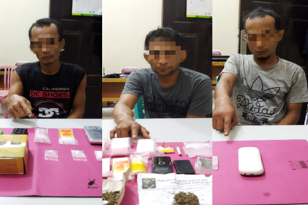 Simpan Sabu dan Ganja, Tim Ojoloyo Polres Kampar Tangkap 3 Pelaku Narkoba dari Dua TKP