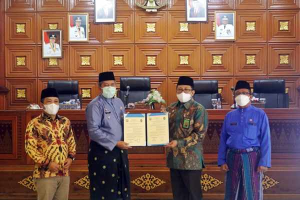 Pemerintah Kabupaten Siak diwakili Bupati Siak melalui Dinas Sosial bersama Dinas Kependudukan dan Pencatatan Sipil Kabupaten Siak, lakukan penandatanganan Kesepakatan Bersama (MoU) dengan Pengadilan Agama Negeri Siak diwakili Kepala Pengadilan Agama Siak Yengki Hirawan di ruang Raja Indra Pahlawan, Kantor Bupati Siak, Jumat (09/07/2021).