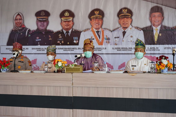Kemudian juga membahas tentang Penanganan Covid-19 dan Vaksin di Kabupaten Siak, selanjutnya Pelaksanaan Pilpung Serentak di tengah pandemi Covid-19, serta keamanan dan ketertiban masyarakat.