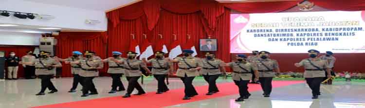 Serah terima jabatan jajaran Polda Riau Karorena, Dirresnarkoba, Kabidpropam, Dansat Brimob, Kapolres Bengkalis dan KaPolres Pelalawan.