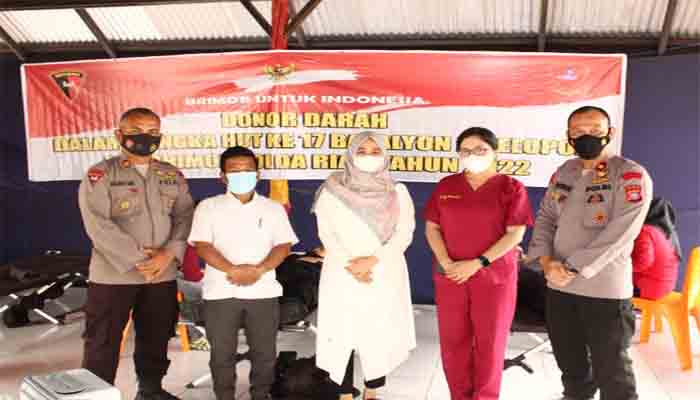 HUT Ke-17, Batalyon B Pelopor Satuan Brimob Polda Riau Gelar Donor Darah