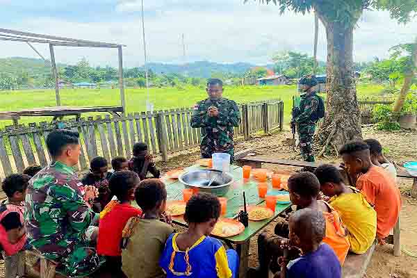"Setiap hari Pos Dabra Satgas Yonif Raider 142/KJ tidak pernah sepi dengan bermainnya anak- anak, ada saja yang diperbuat oleh mereka, kita sengaja ajak mereka makan mie bersama untuk lebih dekat dan membuat betah anak-anak ini di pos," jelas Letda Inf Sutrisno selaku Dantim 1 Pos Dabra.