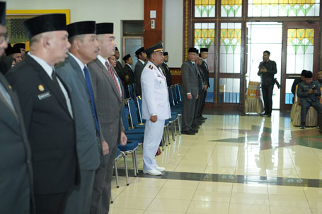 SIAK, Oketimes.com - Memasuki awal tahun 2024, Bupati Siak Alfedri Melantik dan Mengambil Sumpah Pejabat Tinggi Pratama, Pejabat Administrasi dan Pengawas, serta Kepala Sekolah Negeri dan Pengawas Sekolah di Lingkungan Pemerintah Kabupaten Siak, di Ruang Rapat Raja Indra Pahlawan, kantor Bupati Siak, Kamis (4/1/2024).