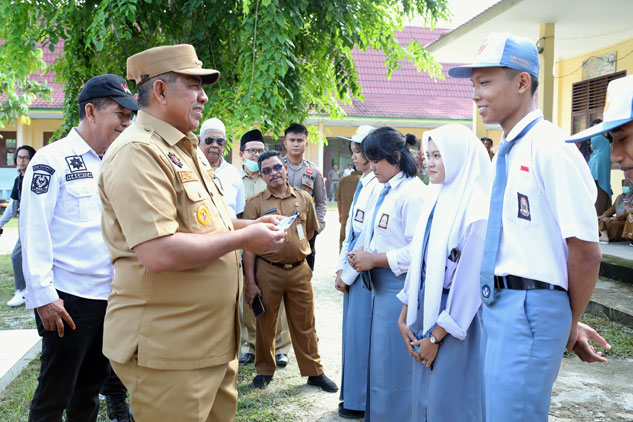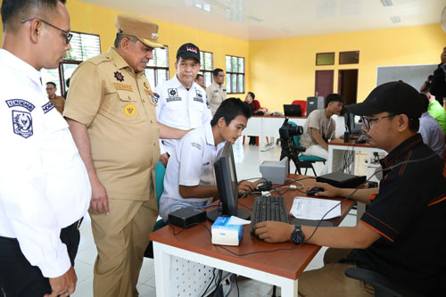 Bupati Siak Alfedri Serahkan KTP-EL Kepada Pelajar SMKN 1 Koto Gasib
