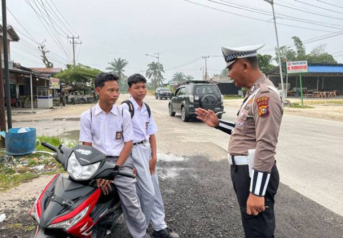Unit Lantas Polsek Kandis Tengah Imbau Pelajar Wajib Pakai Helm Saat Berkendara ke Sekolah