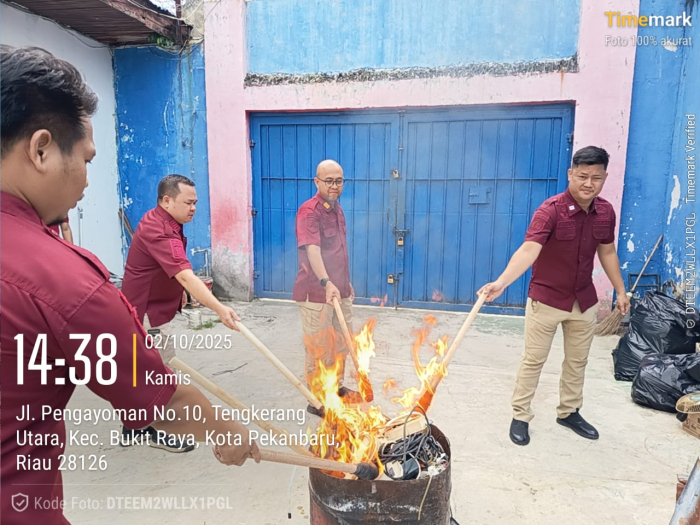 Lembaga Pemasyarakatan (Lapas) Kelas IIA Pekanbaru memusnahkan barang bukti hasil razia pada Kamis (2/10/2025) pukul 14.00–15.00 WIB. Kegiatan ini dilakukan sebagai upaya menjaga keamanan dan ketertiban di lingkungan lapas, sesuai perintah Kepala Lapas Pekanbaru, Yuniarto