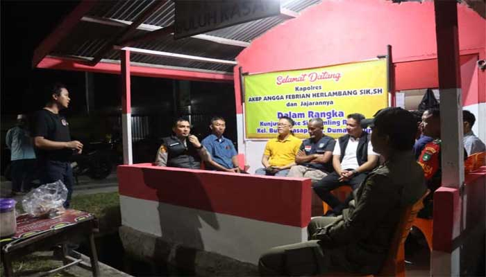 Pada Sabtu (18/10/2025) malam, Kapolres Dumai AKBP Angga Febrian Herlambang, S.I.K., S.H., memimpin langsung patroli dan pengecekan Pos Siskamling di Kelurahan Buluh Kasap, Kecamatan Dumai Timur. Kegiatan tersebut merupakan langkah preventif untuk menciptakan lingkungan yang aman dan kondusif.