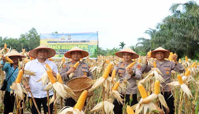 Polres Dumai bersama Polsek Sungai Sembilan menggelar panen jagung pipil di Jalan Sungai Paul, RT 001, Kelurahan Lubuk Gaung, Kecamatan Sungai Sembilan, Kota Dumai, Sabtu (25/10/2025). Kegiatan ini merupakan bagian dari program Gugus Tugas Polri dalam mendukung ketahanan pangan dan swasembada pangan tahun 2025