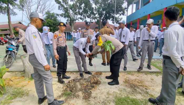 Dalam rangka mendukung program Green Policing serta menumbuhkan kepedulian generasi muda terhadap lingkungan hidup, Polsek Dumai Timur melaksanakan kegiatan edukasi lingkungan dan penanaman pohon bersama siswa SMK Perminyakan PGRI Kota Dumai, Senin (27/10/2025) pagi.