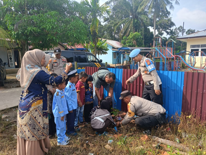 Polsek Medang Kampai Tanam 22 Pohon di PAUD Baitul Ummi I Pelintung