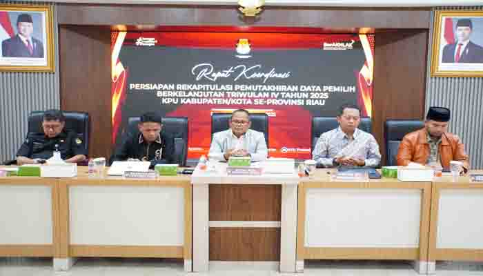 PEKANBARU, Oketimes.com – Komisi Pemilihan Umum (KPU) Provinsi Riau menggelar Rapat Koordinasi Persiapan Pleno Terbuka Rekapitulasi Pemutakhiran Data Pemilih Berkelanjutan (PDPB) Triwulan IV Tahun 2025 pada Rabu (26/11/2025). Kegiatan berlangsung di Ruang Rapat Kantor KPU Riau dan diikuti jajaran Divisi Perencanaan, Data, dan Informasi, Kepala Subbagian terkait, serta Admin dan Operator Sistem Informasi Data Pemilih (Sidalih) dari KPU Kabupaten/Kota se-Riau.