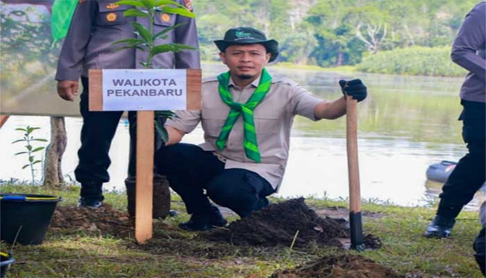 Wali Kota Pekanbaru, Agung Nugroho, saat mengikuti penanaman pohon dalam peringatan Hari Pohon Sedunia belum lama ini di Pekanbaru.