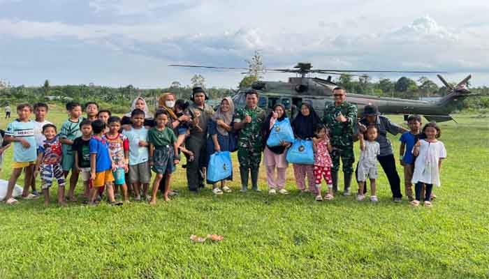 Distribusi bantuan dilakukan dengan menjangkau sejumlah titik yang mengalami dampak terparah. Beberapa lokasi yang sulit diakses melalui jalur darat mendapat suplai bantuan menggunakan helikopter guna memastikan masyarakat segera memperoleh kebutuhan pokok dan perlindungan awal.
