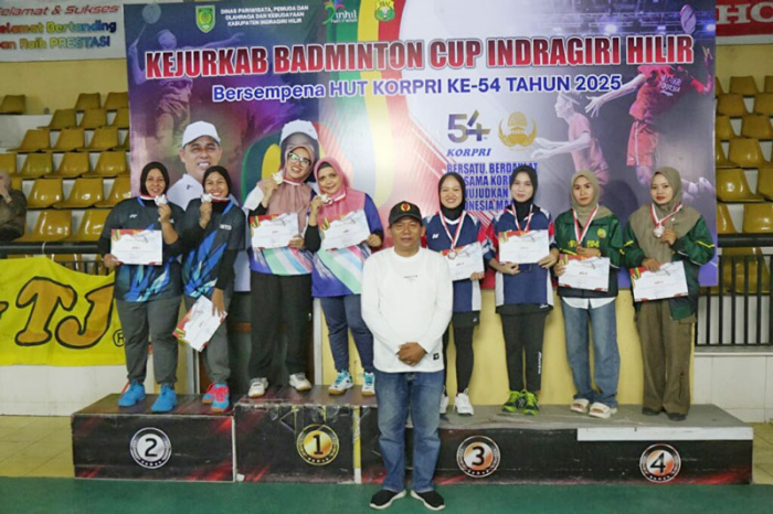 Dia juga mengucapkan selamat kepada para peserta yang telah berhasil meraih prestasi terbaik pada Kejurkab Badminton Cup Indragiri Hilir tahun 2025 yang resmi ditutup hari ini.