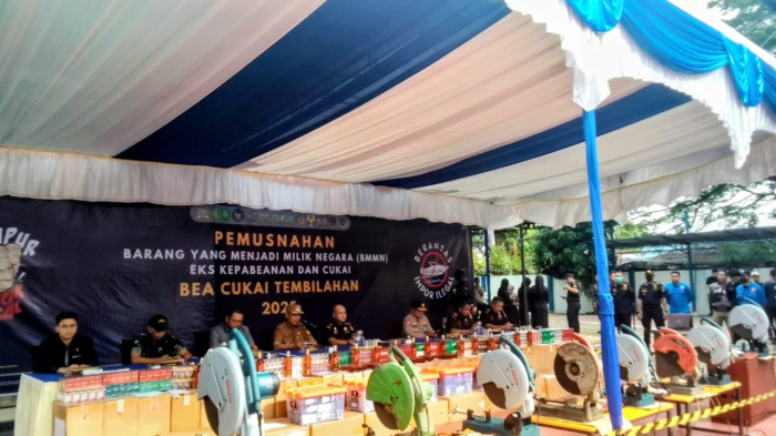 Adapun barang yang dimusnahkan meliputi 2.118.090 batang rokok ilegal, 25.200 mil minuman mengandung etil alkohol (MMEA), 1.094 unit handphone berbagai tipe, 30 unit suku cadang handphone, 30 unit pelindung layar (screenguard), serta tiga paket suku cadang handphone lainnya.