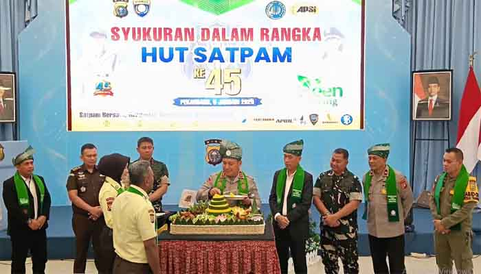 Kapolda Riau Irjen Pol. Hery Heryawan menghadiri acara syukuran Hari Ulang Tahun (HUT) ke-45 Satuan Pengamanan (Satpam) Indonesia yang digelar di lantai 5 Mapolda Riau, Senin (5/1/2026).