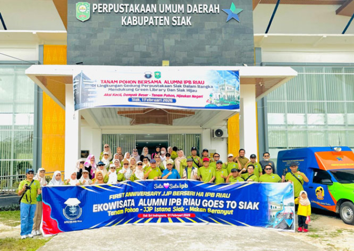 Siak, Oketimes.com - Dalam Rangka mendukung Green Library dan Siak Hijau di kabupaten Siak, Himpunan Alumni IPB Riau (HA IPB Riau) menggelar kegiatan Tanam Pohon Bersama di lingkungan Gedung Perpustakaan Daerah Siak Minggu (01/02/26).