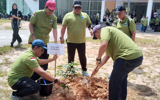 Dukung Green Library dan Siak Hijau, Alumni IPB Riau Tanam Pohon Bersama di Gedung Perpustakaan Siak