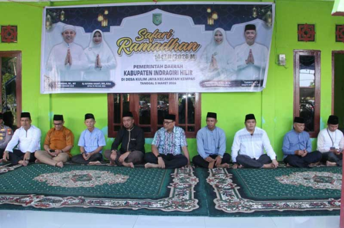 INHIL - Bupati Indragiri Hilir (Inhil) yang diwakili oleh Sekretaris Daerah (Sekda) Kabupaten Indragiri Hilir, Tantawi Jauhari, bersama Ketua Dharma Wanita Persatuan (DWP) Hj. Safarina Tantawi melaksanakan kegiatan Safari Ramadan di Kecamatan Kempas, Kamis (5/3/2026).