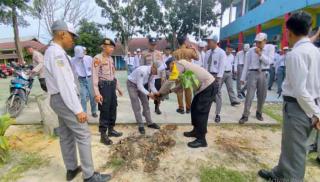 Polsek Dumai Timur dan Siswa SMK Perminyakan Tanam Pohon Dukung Green Policing