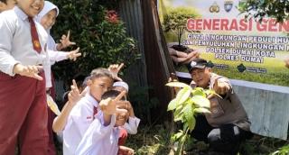 Polsek Sungai Sembilan Tanam Pohon dan Edukasi Green Policing di SD Negeri 007 Dumai