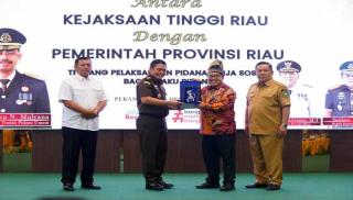 Kejati Riau dan Pemprov Riau Tandatangani MoU Pelaksanaan Pidana Kerja Sosial